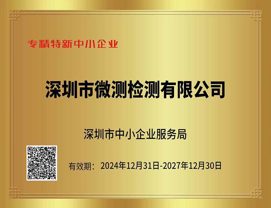 “專精特新”中小企業(yè)是指具有專業(yè)化、精細(xì)化、特色化、新穎化等四大特征的中小企業(yè)。企業(yè)通常專注于某一特定細(xì)分市場(chǎng),擁有獨(dú)特的技術(shù)或工藝,產(chǎn)品或服務(wù)具有較高的附加值和顯著的經(jīng)濟(jì)、社會(huì)效益。微測(cè)檢測(cè)憑借其在檢測(cè)領(lǐng)域的專業(yè)專注、精益求精、獨(dú)特的技術(shù)優(yōu)勢(shì)以及持續(xù)的創(chuàng)新能力,榮獲“專精特新中小企業(yè)”稱號(hào)。